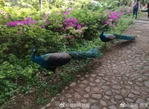 5昆明动物园孔雀“越狱”到云大“串门子”