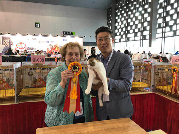 全球顶级的猫咪选美比赛——“国际爱猫联合会”世界名猫赛——4月7日至8日在上海世博展览馆举行,这也成为2018年上海国际宠物博览会最大的看点之一。澎湃新闻(www.thepaper.cn)记者从赛事组委会获悉,这次前来参赛的世界名猫共188只,总价值超过2000万元。经过两天十个赛环的角逐,苏格兰折耳猫FOREVERSTAR’S HAMBURGER、英国短毛猫ELVIS SIMBA OF GHOST YOYO、美国卷耳猫noble gourd butterfuy分获幼猫组、成猫组和绝育猫组的总积分冠军。