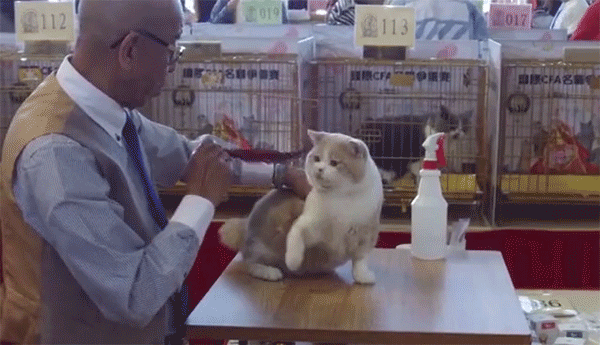 本次CFA世界名猫赛(上海站)相关负责人胡蓓颐表示,简单来说,猫咪选美主要是从体态、颜色、性别、动态、美容等方面来评判优劣和等级,但不同品种的猫有不同的审美评判标准,CFA联合会据此制定的标准多达近百个。比如加菲猫的最佳标准是眼睛和鼻子连成一线,眼睛耳朵都要圆,耳朵要小;英国短毛猫体型要大、骨骼健壮、体毛浓密、耳朵要小;对于卷耳猫来说,耳朵向后弯转90度是最佳标准,在100分的总分中,仅此一项达标就可拿到30分。