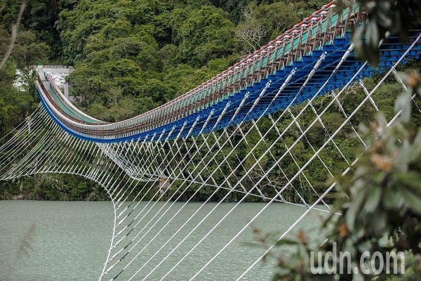 桃园市复兴区“新溪口吊桥”湖光山色的美景。(图片来源:台湾《联合报》)