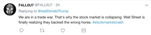 我们就是在打贸易战,这就是为什么股市在跌,华尔街应该终于意识到他们支持错了人。还开始甩表情包。