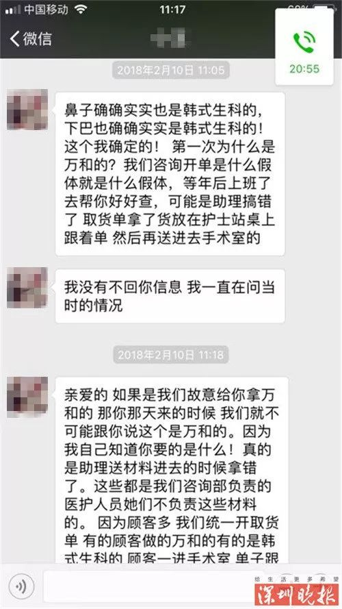 关于张女士假体下巴的事,何女士表示是由于每个品牌的假体下巴规格有差异,因此术中医生根据患者的情况临时调整了更适合的假体下巴,并非医生弄错,只是医生术后忘记告知患者。此说法明显与该门诊部之前给的解释有所出入,究竟事实真相是什么?何女士告诉记者,这需要进行深入调查,具体情况现在无法说明。