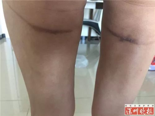 同年 3 月 15 日,张女士发现大腿出现皮疹,于是到香港大学深圳医院就诊,被诊断为色素沉积、瘢痕,与术后穿紧身衣有直接关系。" 紧身衣是医生叫我穿的,每天要穿 18 个小时,连续穿半年以上。" 张女士说道。她表示,腿部的瘢痕就算拿针插入也毫无感觉。