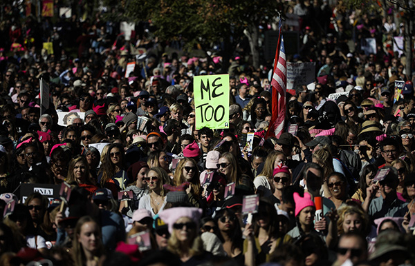 洛杉矶“女性大游行”中,人们高举 #Metoo# 的牌子。东方IC 资料