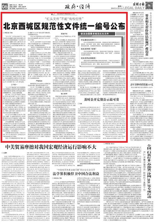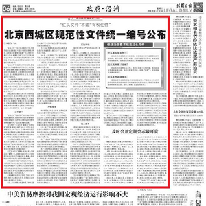 在法治政府建设提档加速的今天,“红头文件”曾经的弊病显然早已格格不入,对于规范性文件的管理正在得到前所未有的加强。北京市西城区,这个许多部委机关所在地的“首善之区”,就在规范性文件管理上成为“先行者”。