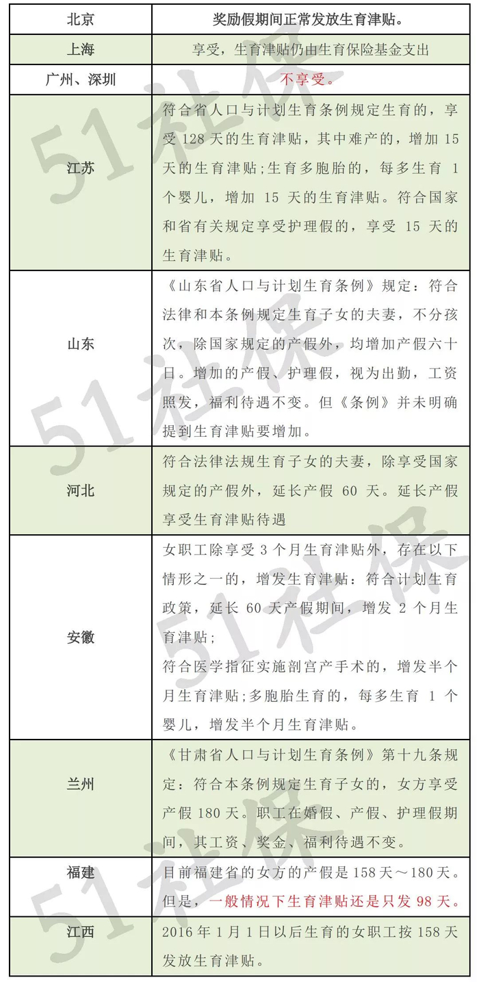 这也就是说,部分地区计算生育津贴的假期天数并不等于职工实际休假天数,职工依照计划生育法律、法规规定享受奖励增加的产假期间由用人单位按照规定发放工资,职工不享受生育津贴。