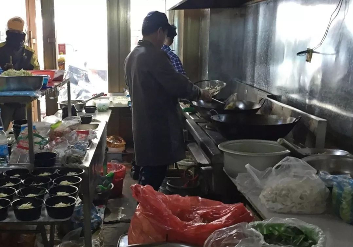 记者实地踏访:这些由车库改造的外卖店因为面积太小,都不接待堂食。有的店铺内做好的食物裸放,没有任何遮挡;有的店铺炒菜和制作人员不戴手套、口罩……通过这样的制作过程,食物源源不断地通过外卖平台,送到了消费者手中。