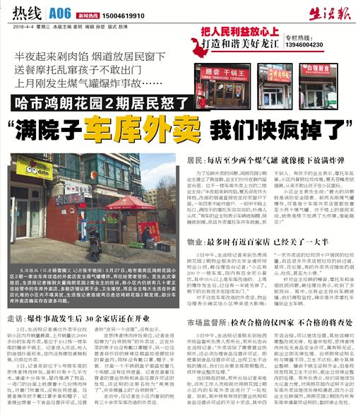居民:美团把关不严将黑外卖送到市民餐桌如今,在鸿朗花园小区里,市场监督部门、消防部门、物业和社区轮番检查,小区业主说:“自从生活报关注鸿朗花园小区车库外卖的情况后,总能在小区里看到忙忙碌碌的执法人员,物业保安也挺负责,小区确实好了很多。”