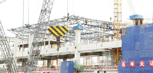 工作人员说,只有吊装钢桁架后才称得上是屋面建设,这时的站房才有了它真正的模样。