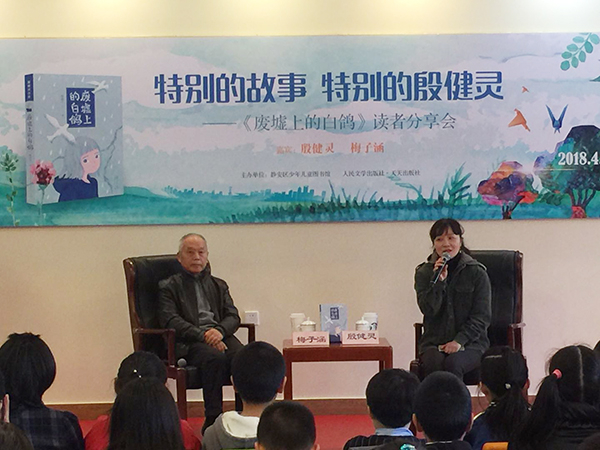 这样一个残酷、两难,又拷问人性的话题,儿童文学家殷健灵将其放置在新作《废墟上的白鸽》中。4月7日,殷健灵与儿童文学作家梅子涵相聚上海静安区少儿图书馆,与小读者们共同分享自己的创作理念。