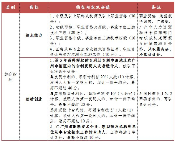 为了鼓励人才在穗创业,将向创业成绩优异、社会贡献明显的人才倾斜。个人所得税及企业纳税项,最高都可获得12分的加分。