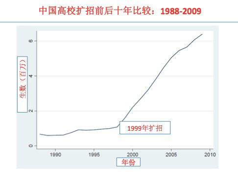 中国高校扩招前后十年比较。