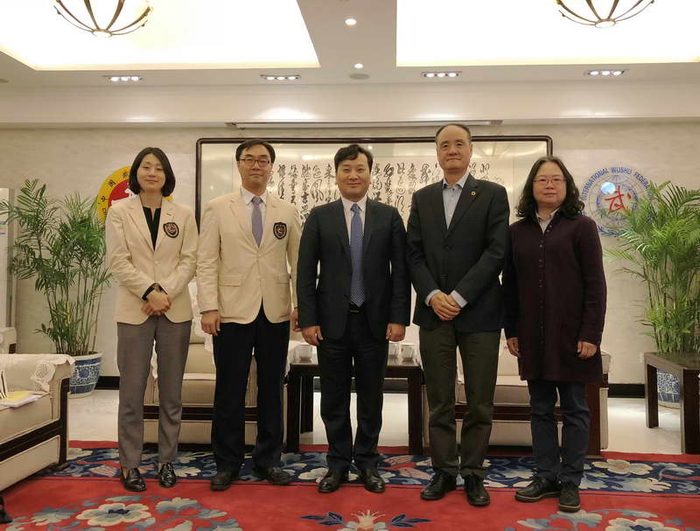 由韩国武术协会主席朴昶范先生率领的韩国武协代表团于2018年4月4日拜访了中国武术协会。国际武联秘书长、中国武术协会主席张秋平接见了代表团一行4人。