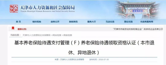天津市人力社保局网站历史信息显示,天津在2016年7月开展过基本养老保险待遇支付管理养老保险待遇领取资格认证(本市退休、异地退休)工作。