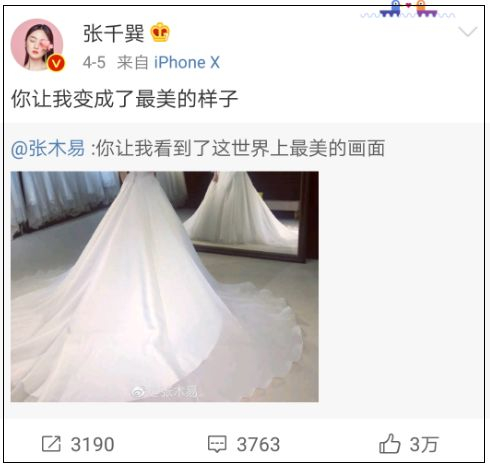 4月4日, 30岁的张木易和18岁的张千巽这对相差12岁的情侣在微博上宣布,二人要结束10年的爱情长跑,准备结婚了,并且晒出了婚纱照。