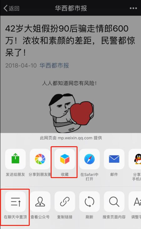 阅读公众号推文中途退出时,可以先把文章收藏,或者选择将其「在聊天中置顶」,回完消息后再打开看,时间间隔不长的话,还可以自动回到上次阅读的位置。