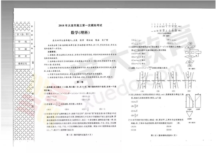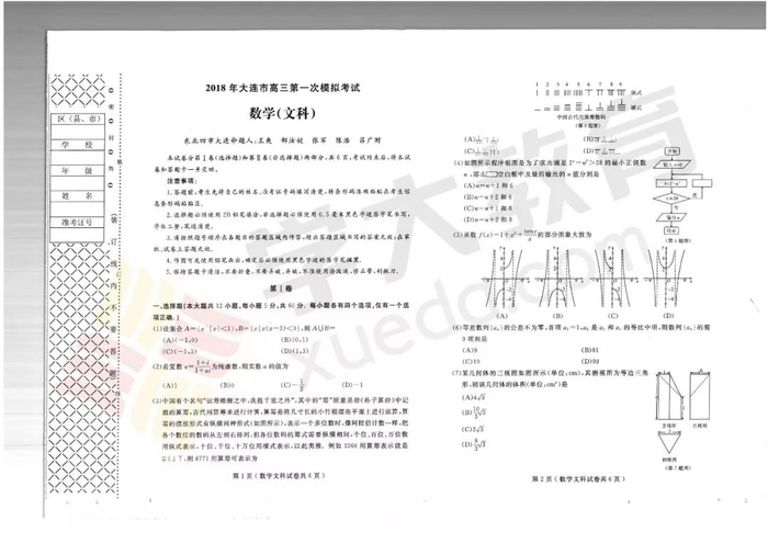 最新丨2018高三大连市一模全科试卷+答案!文理全!