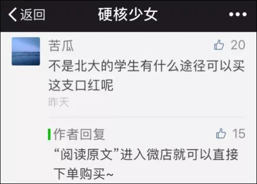 那么,非北大人可以购买这款“专属于北大女生的口红”吗?王梓在公众号下回复“当然可以,考不上北大你就涂个北大口红咯~”