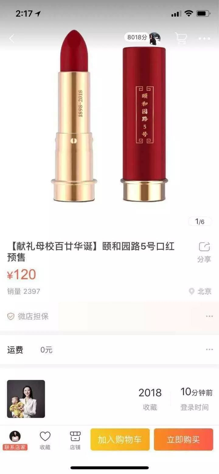 “饮水而思源,为了报答母校北大的辛勤栽培,为了表达自己对母校的款款深情,这名北大校友,自制口红献礼,命名为‘颐和园5号’,售价120元/支,限量12000支。
