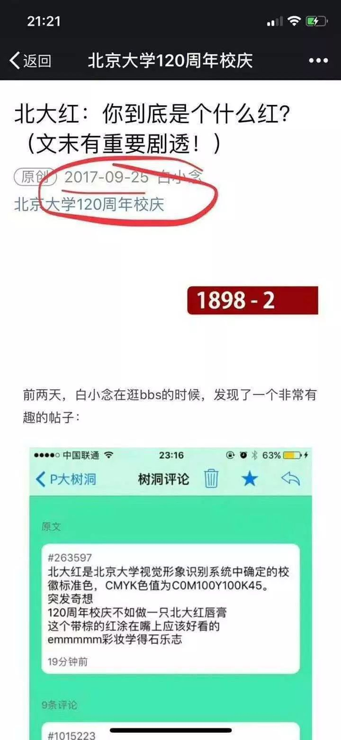 微信公号@硬核少女 发了一篇软文广告《我把北大校徽上的红色做成了口红,献给颐和园路5号的你》,讲的是北大校友王梓发售了一款号称“北大红”的口红。