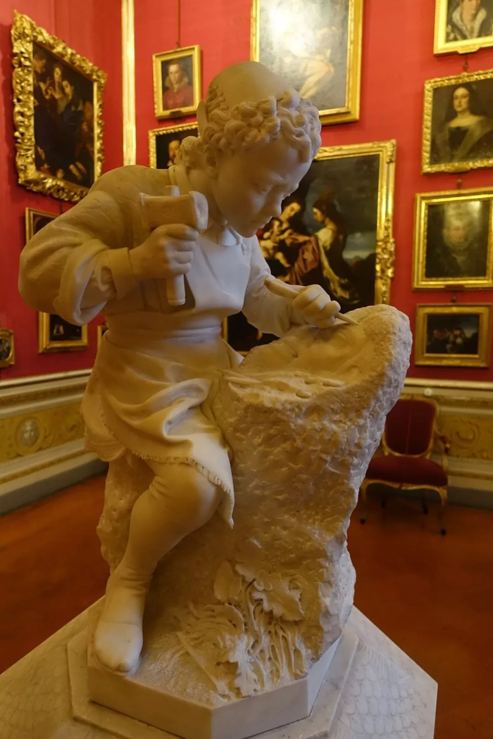 这尊雕像为少年的米开朗基罗。他正在洛伦佐开办的美术学校学习雕塑。这件雕塑现藏佛罗伦萨的皮蒂宫。