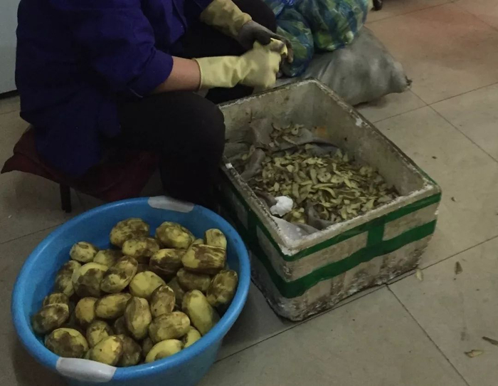 揭幕土豆打皮前后都不洗直接扔锅里炸自述:“店里土豆从来都不洗,直接就打皮。打完皮的土豆都没法看,那也不洗,因为要油炸,洗过的食材下油锅时会崩油。”