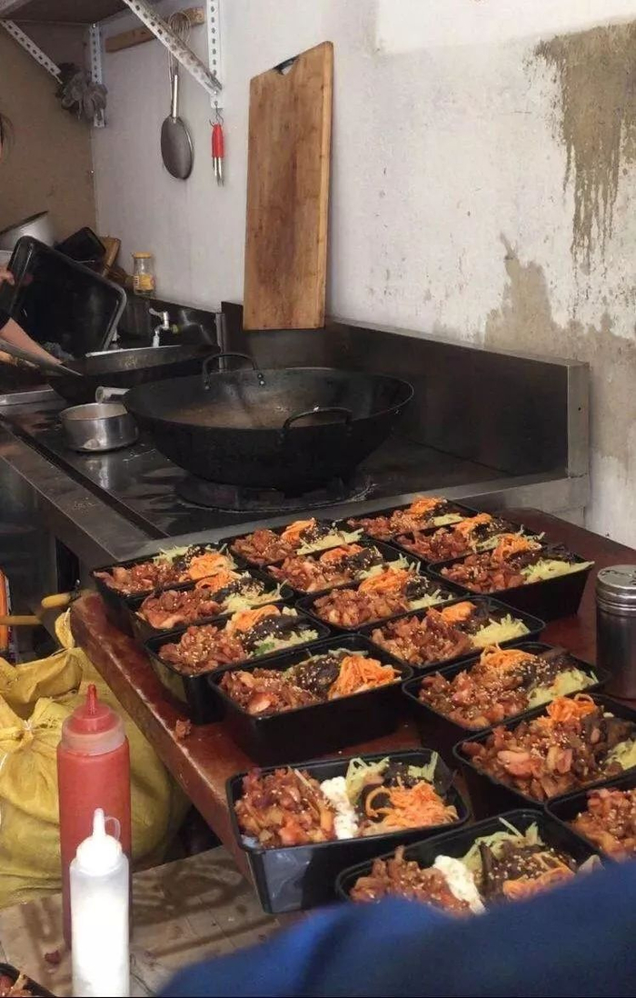 钱先生说,店内的生活区和餐品制作区都是混在一起的。“店里面积比较小,加上老板两口子,孩子,还有我这个伙计,四个人在店里转,孩子经常趴在桌上写作业啥的,出来进去也都不戴口罩,抓这抓那不洗手就回来做饭是常事,半成品和做好的外卖也都没有遮盖,厨房和生活区没有区分。”