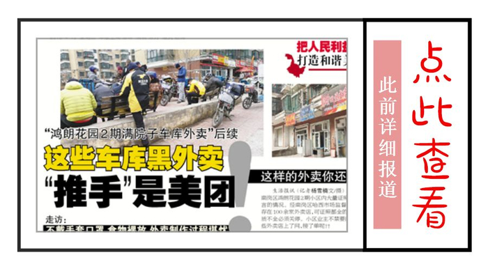 生活报连日来关注了车库改造外卖店扎堆哈市南岗区鸿朗花园2期小区,而对食品安全许可证审核不严的美团外卖被小区业主们质疑是幕后“推手”一事。