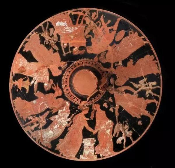 在上海博物馆大堂内展出的另一件展品《舞乐图瓶画器盖》的器盖上展示的场景与狄俄尼索斯崇拜(酒神崇拜)密切相关。而崇拜酒神的希腊人民在祭祀酒神时奏乐舞蹈、喝酒欢庆,在这样热烈情绪的冲击下,在一场场狂欢醉态的歌舞游行中,希腊戏剧逐渐摆脱了宗教的束缚,以独立成熟的艺术形态登上了历史的舞台。之后逐渐演变成三种戏剧形态:悲剧、喜剧和讽刺剧。