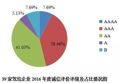 通过对全市39家驾培企业进行评价,评定为AAAA级(优秀)的驾培企业共3家,评定为AAA级(优良)的驾培企业共15家,评定为AA级(合格)的驾培企业共16家,评定为A级(基本合格)的驾培企业共2家,评定为B级(不合格)的驾培企业3家(西部、慧谷、驶来客)。