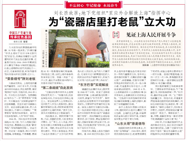 “这里实际是中共中央上海局的秘密机关之一。”杨继光说,抗日战争胜利后,刘长胜组织领导上海工人、学生和各界人士开展运动,组织数万人参加人民保安队,配合解放军解放上海,彻底粉碎国民党企图毁灭上海的阴谋,“很多工作、很多决定都是在这个楼里做的。”