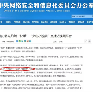 4月6日,国家网信办发布消息,要求“快手”“火山小视频”暂停有关算法推荐功能,并将“王乐乐”“杨青柠”“仙洋”“牌牌琦”“陈山”等违规网络主播纳入跨平台禁播黑名单,禁止其再次注册直播账号。