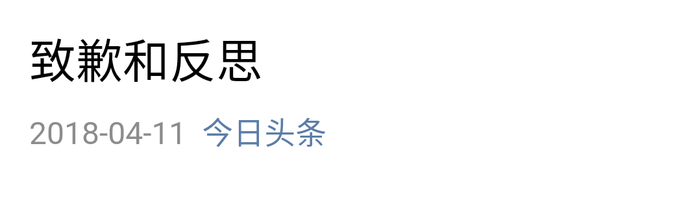 4月11日,今日头条创始人、CEO张一鸣发文“致歉和反思” 。