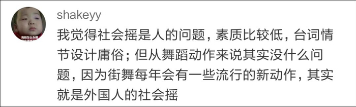 一些网友认为,社会摇毕竟只是一套舞蹈动作,谈不上低俗的问题: