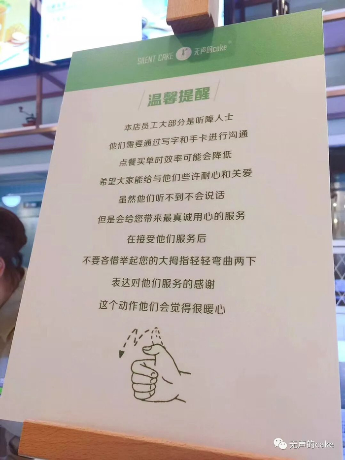 在无声的cake,听障人士是绝对主力,店面11人,10人是无声者,后厨无声者比例占50%以上。在经营中,健全人与无声者之间的沟通,其实并没有想象中那么难。