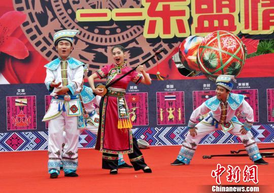 当天,在美丽的崇左市园博园,极具民族特色的天琴弹唱、壮族山歌敬酒、绣球传情、糯香祈福表演,以及打榔舞、铜钱舞、花山拳、登荡舞、竹竿舞、东盟情歌会展演等轮番上演,为海内外宾客呈现一场具有浓郁壮乡风情的传统民族文化盛会。