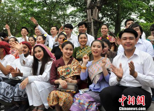 中新网崇左4月12日电(记者 黄艳梅)2018年“壮族三月三·相约游广西”暨崇左花山国际文化旅游节12日在中国最“壮”的城市广西崇左市开幕。来自泰国、老挝、柬埔寨、越南、也门等国家的留学生参与狂欢,共度壮乡民俗盛宴。