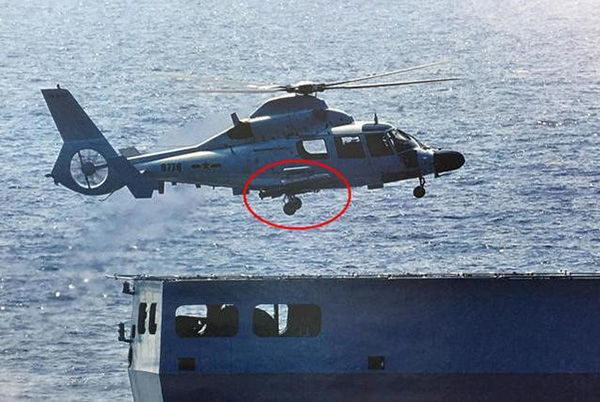 受载荷能力限制,直-9C执行反潜任务时一般只携带一枚反潜鱼雷。图片来源:中国海军网