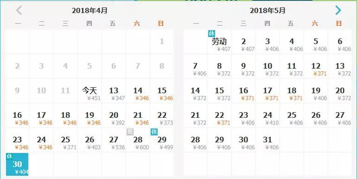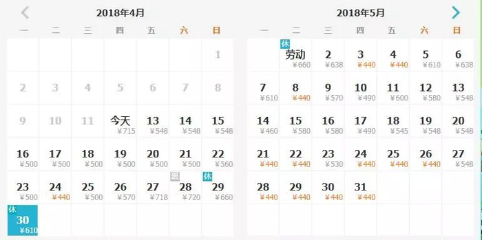 (觉得5月1日出发行程太紧,4月30日出行也不错。)