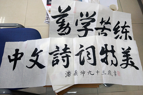 潘鼎坤送给学校的书法作品。 澎湃新闻记者 章文立 图