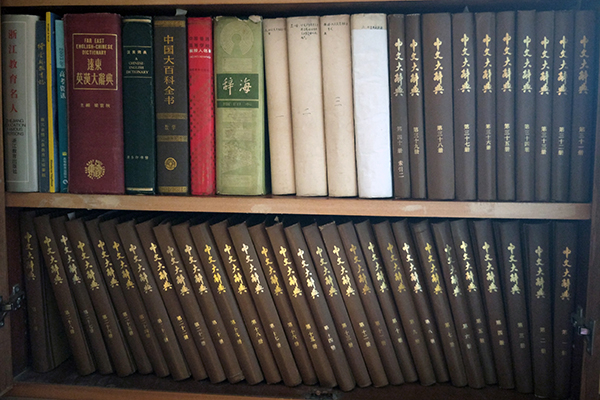 书柜里的《中文大辞典》。 澎湃新闻记者 章文立 图
