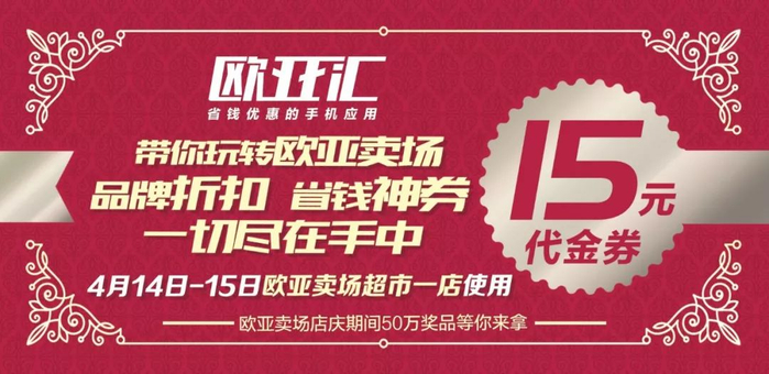 或欧亚卖场超市一店满30减15元代金券