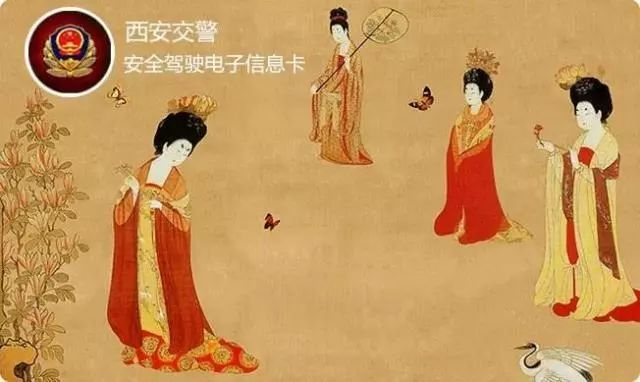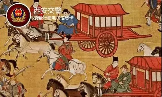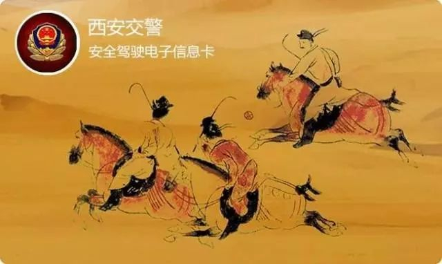 “安全行驶电子信息卡”样式图以唐朝春游的景象作为代表,春游交通畅通有序,体现了西安自古以来所具有的交通文明。