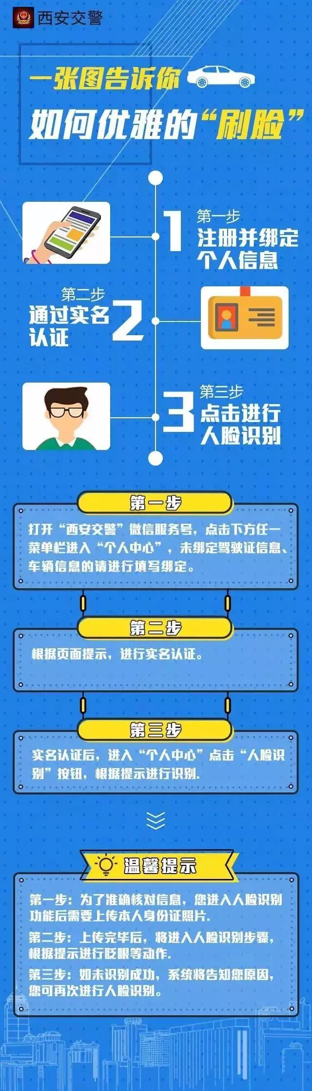 “个人电子信息卡”是西安交警依托人脸识别技术,已成功开发的实名核身的功能!功能自试运行以来,在现有222万用户中,已有123822位用户通过注册绑定个人信息、进行实名认证、人脸识别技术领取电子信息卡。