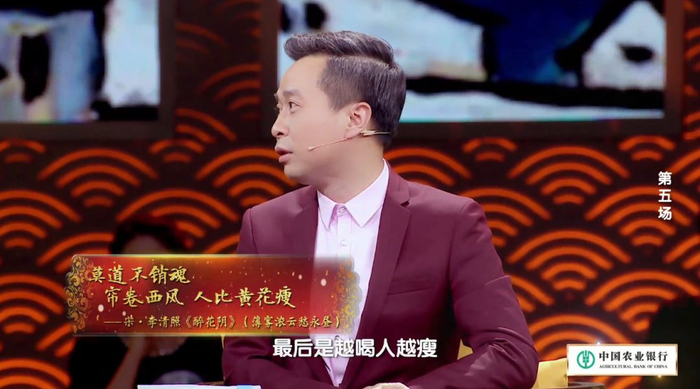 康震:你想念一个人,可以想念到什么程度?这个词是这样写的:白天,薄雾浓云愁永昼,白天很无聊。然后呢,半夜凉初透,晚上睡不着。然后呢,东篱把酒黄昏后,黄昏把酒喝,暗香突袭来,最后是越喝越瘦。