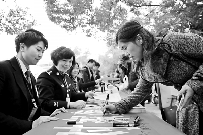 弘扬反家暴理念,普及反家暴常识。图为江西省吉水县市民签名反家暴。光明图片/视觉中国