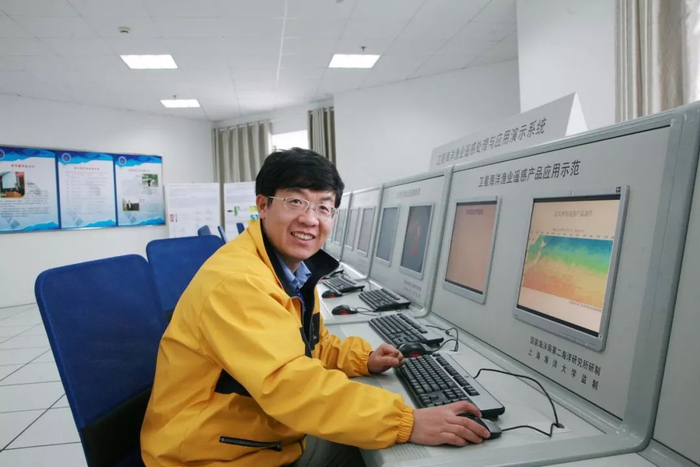▲陈新军在海洋渔业遥感与GIS技术实验室