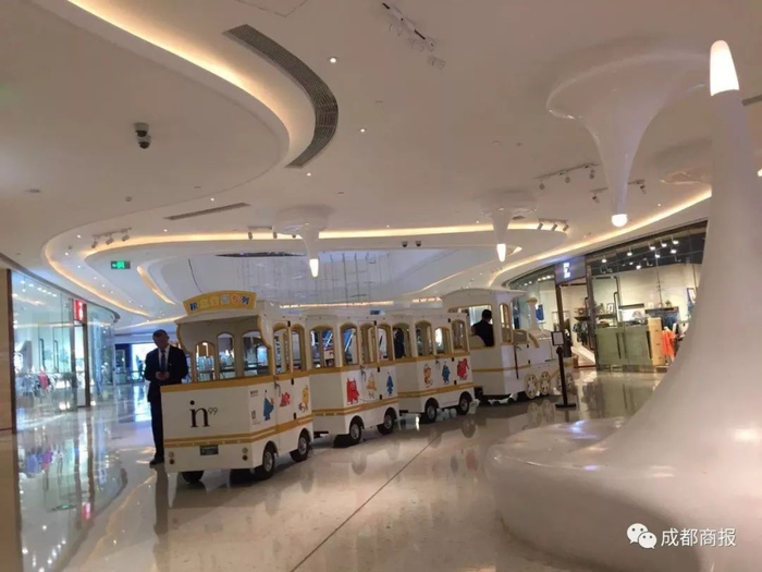 由于5楼为儿童商业区,才设置了小火车免费乘坐,在商场的行驶线路也是固定的。邹先生则介绍,平时会有两名司机轮班驾驶,一圈大概几分钟,每一圈后会休息十多分钟。
