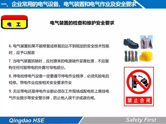史上最全的电气安全培训PPT,非常详细全面! 中国安全生产网 2018.04.1619:34 关注 原标题:史上最全的电气安全培训PPT,非常详细全面!中国应急管理一种能力,一份保险一次关注,终身受益来源:EHS俱乐部中国安全生产报社 新媒体中心编辑:王富成有用请点赞!