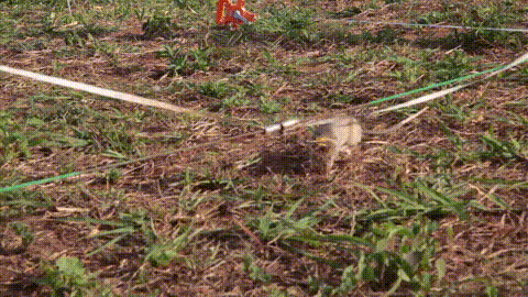 训练开始,一只叫“库德拉”的探雷鼠很快嗅到炸药气味。只见它突然停下,抽动几下粉色的小鼻子,然后用前爪拨开地雷上方的草叶和土壤。